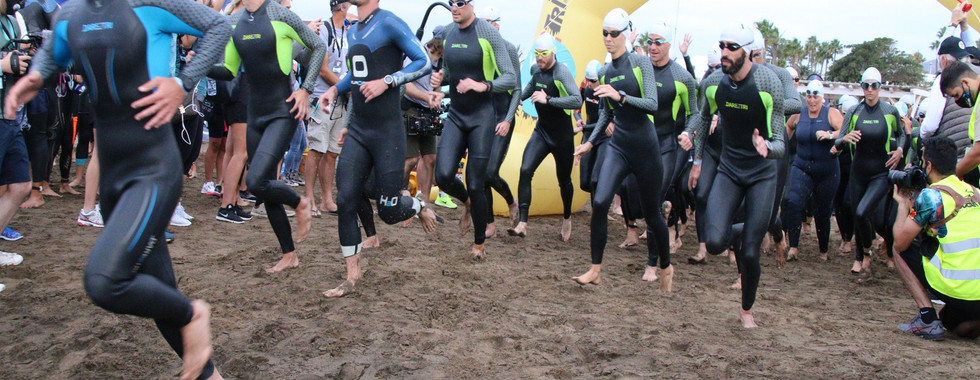 Desde primera hora de la mañana fueron llegando los más de 500 triatletas participantes al punto de salida, situado en esta ocasión en la playa de Los Pocillos. El mar estaba picado a primera hora de la jornada, por lo que iba a dificultar las brazadas de los triatletas. Los participantes fueron tomando la salida de manera escalonada para evitar aglomeraciones y respetar las normas sanitarias establecidas.